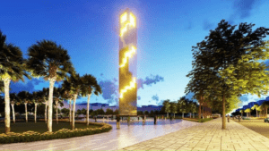 • Có đài phun nước và Hồ điều hòa thiết kế phố đi bộ như hồ Hoàn Kiếm.